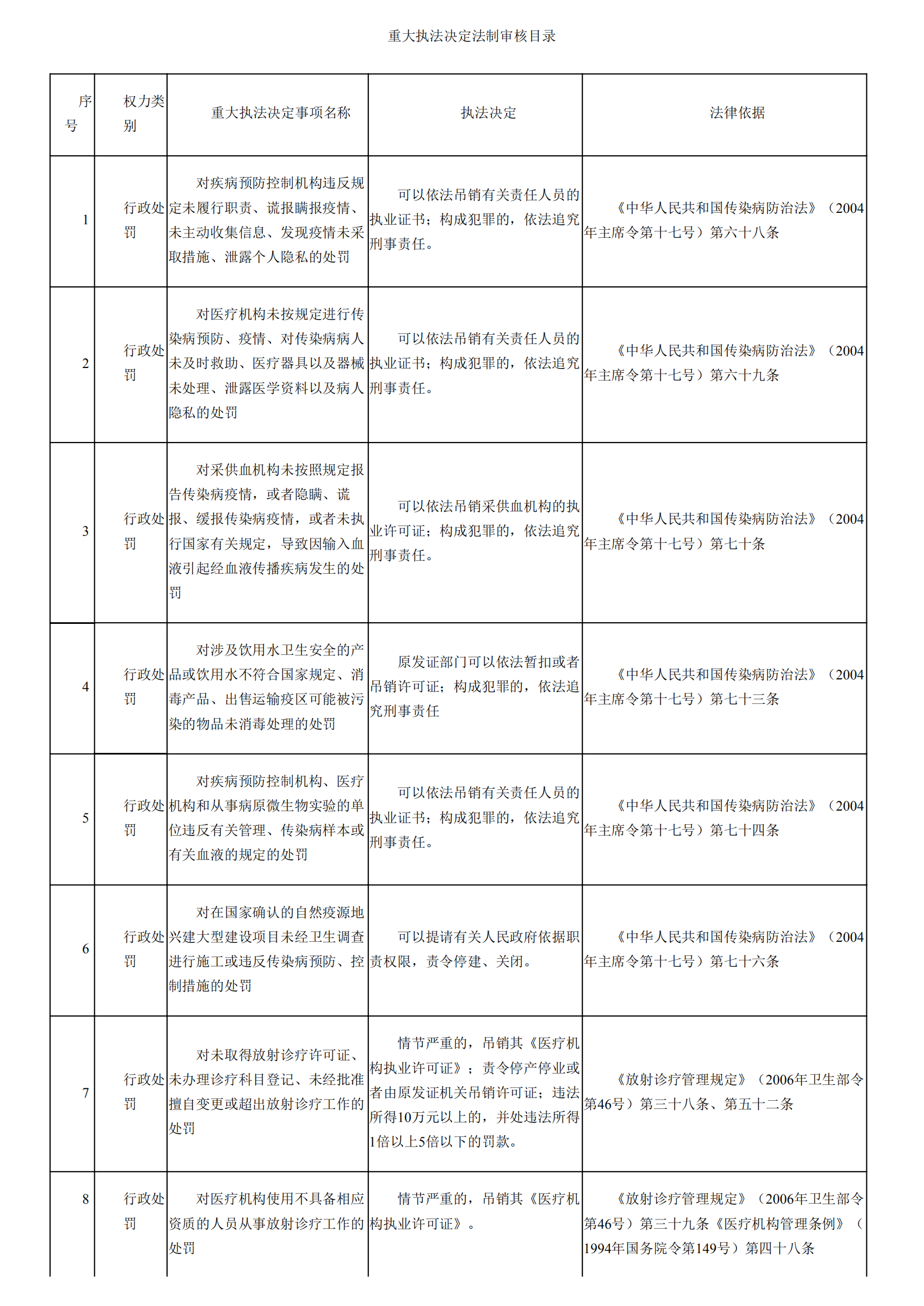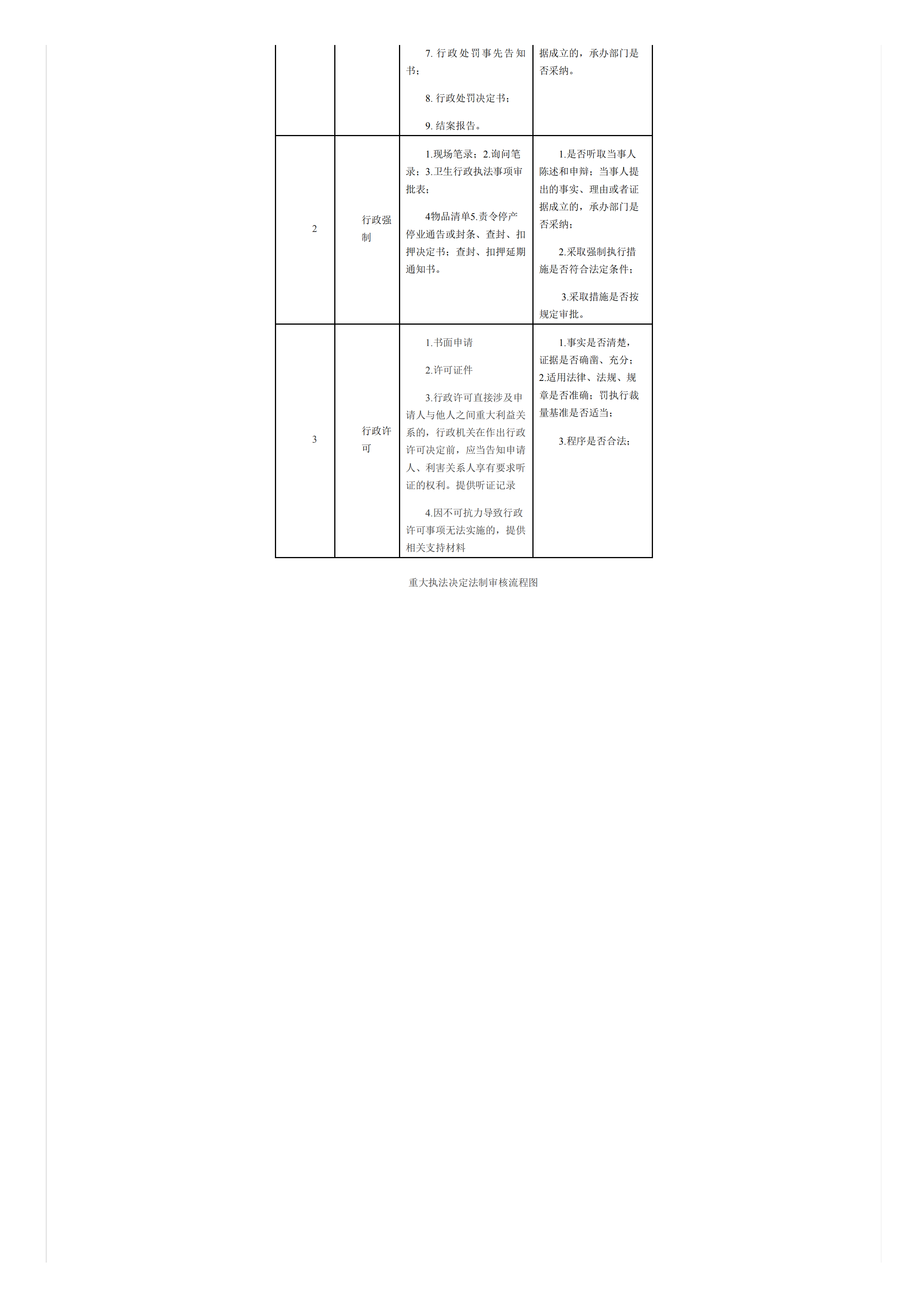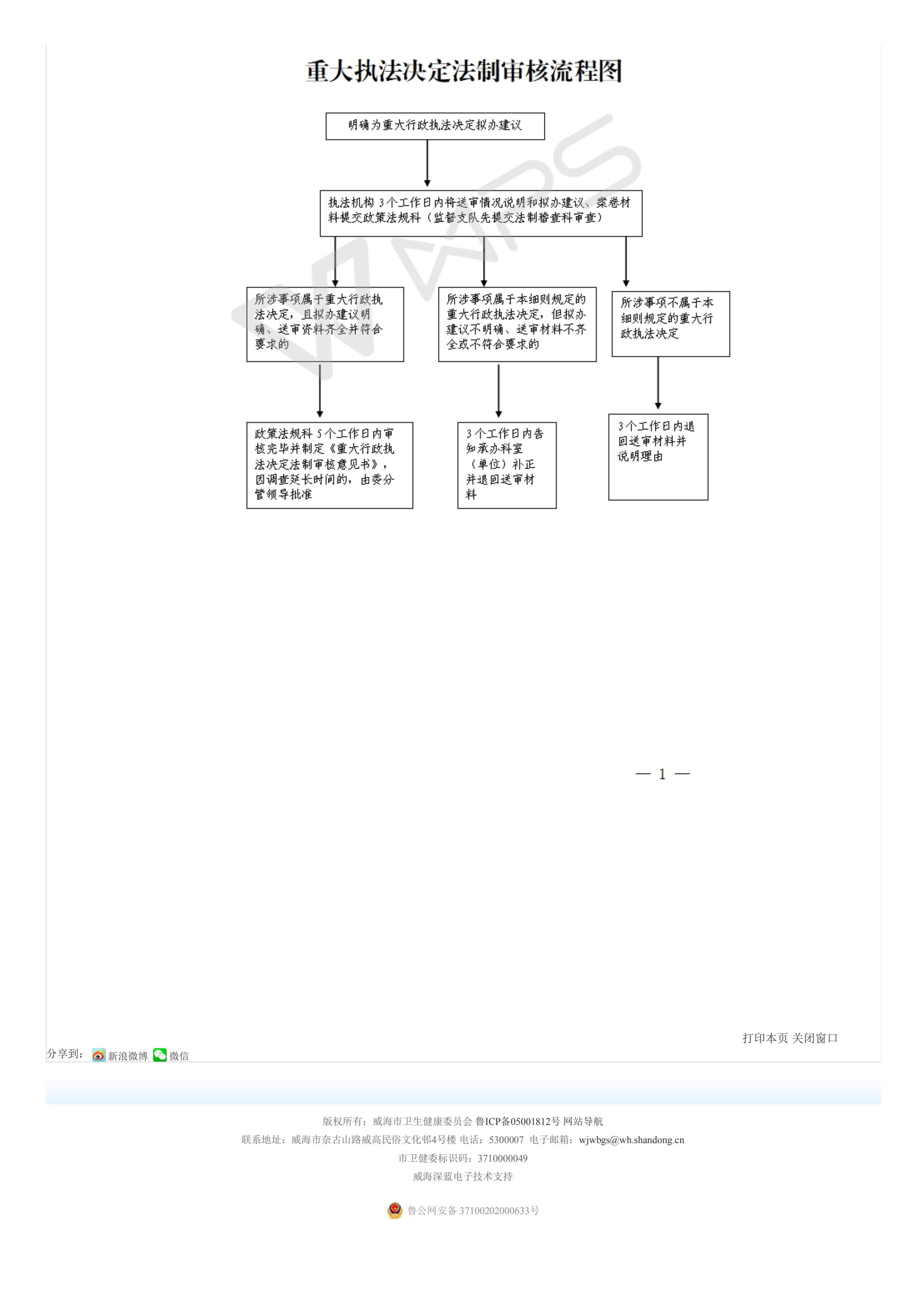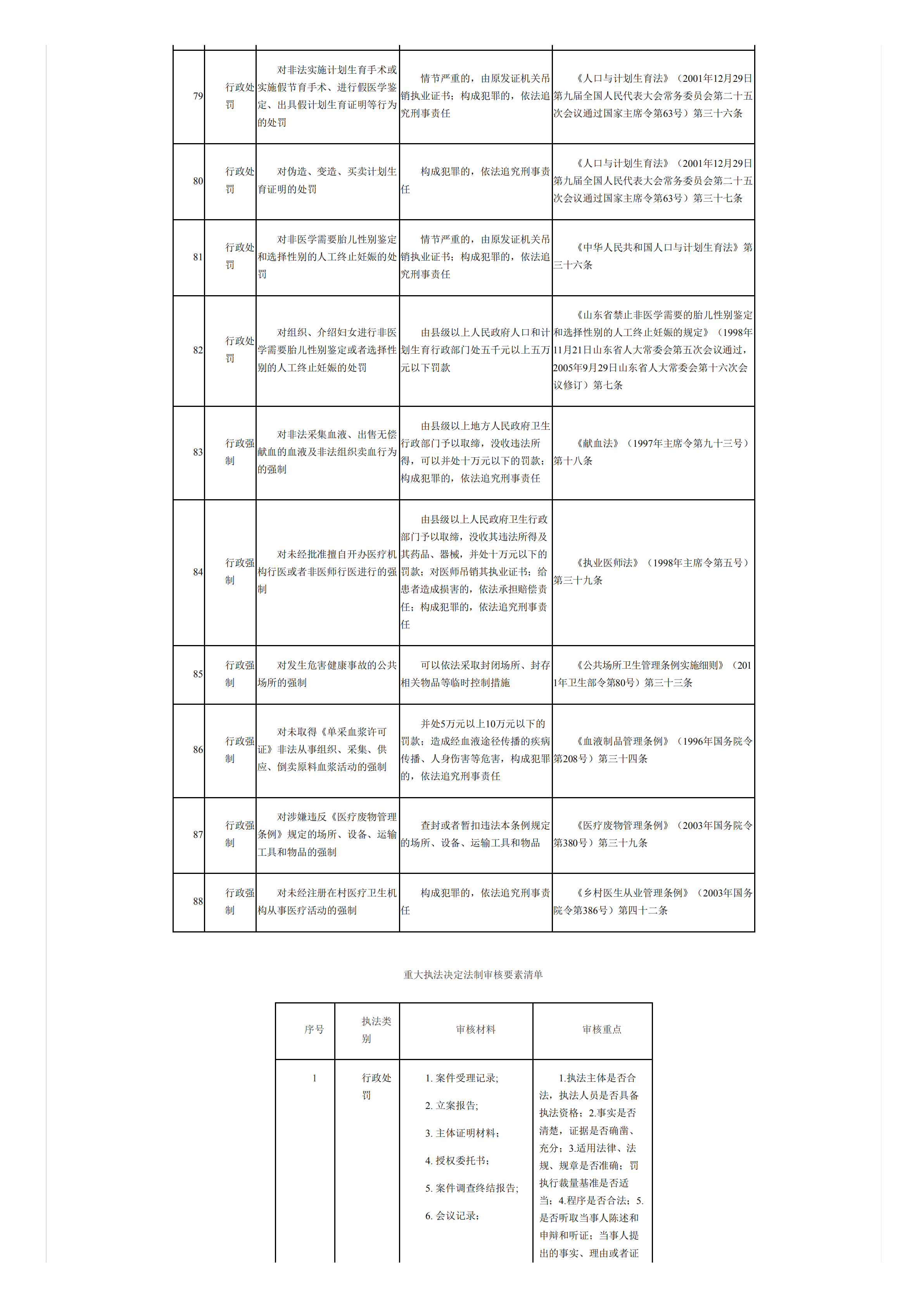 威海市卫生计生委重大执法决定法制审核目录、要素清单、流程图