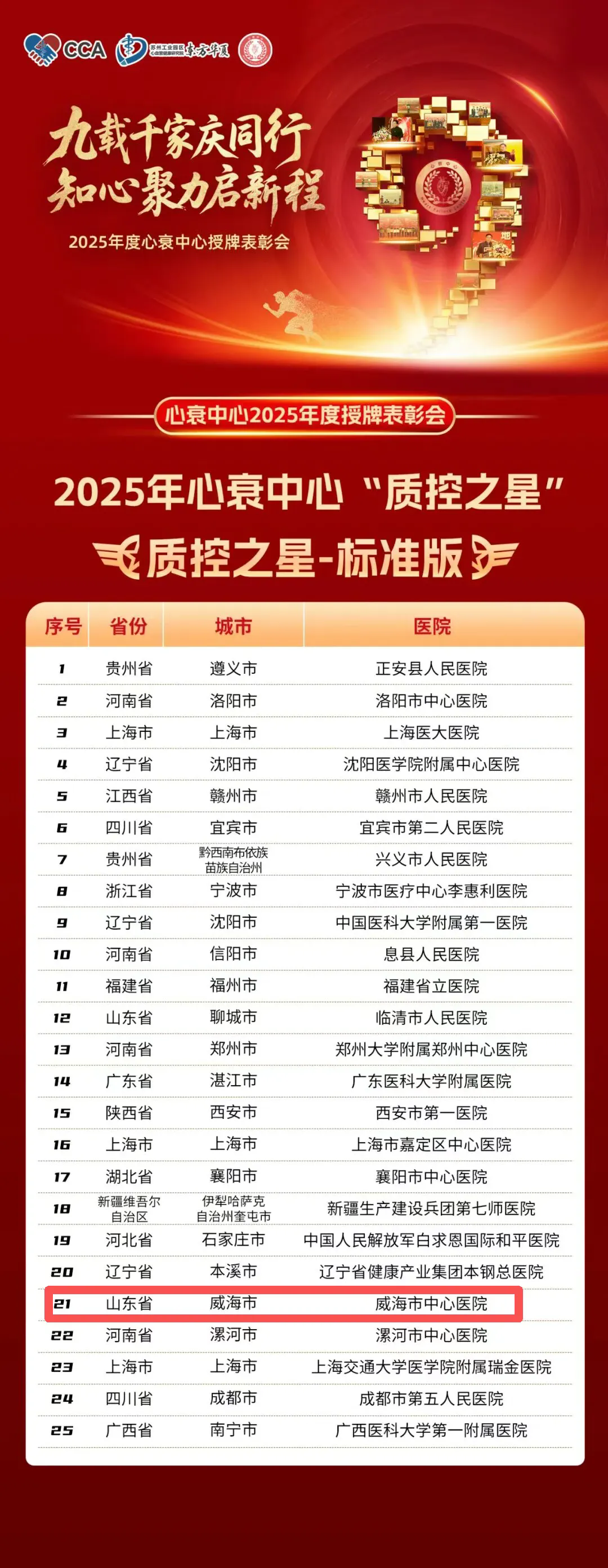 | 威海市中心医院心衰中心获2025年度“质控之星”称号 | ||||