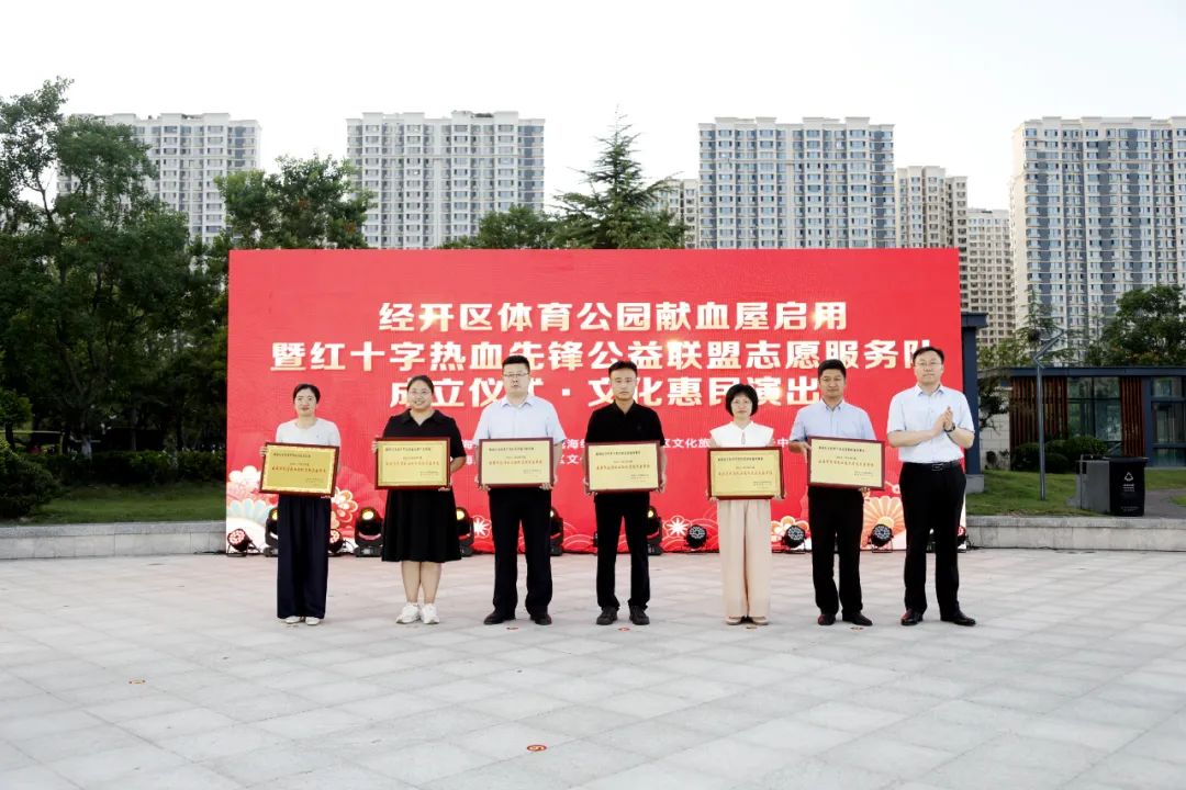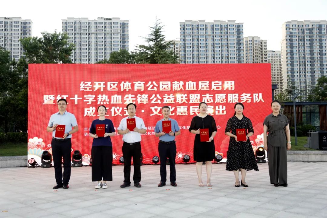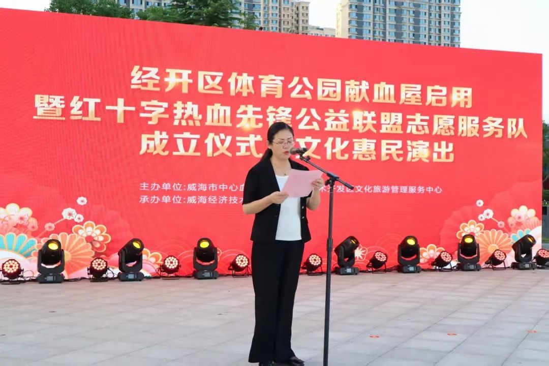 8月7日晚,经开区体育公园献血屋启用暨威海市红十字热血先锋公益联盟志愿服务队成立仪式在世纪体育公园举行。活动由威海市中心血站、经开区文化旅游管理服务中心主办,经开区文化馆承办。经开区党工委管委、威海市卫生健康委员会、威海市红十字会、威海市中心血站相关领导出席活动,近千市民共同见证我市无偿献血事业的燃情时刻。 活动伊始,现场播放了最美经区人、献血榜样段君伟事迹,介绍了新启用献血屋的情况和山东省无偿献血“三免政策”,并科普了血液知识。