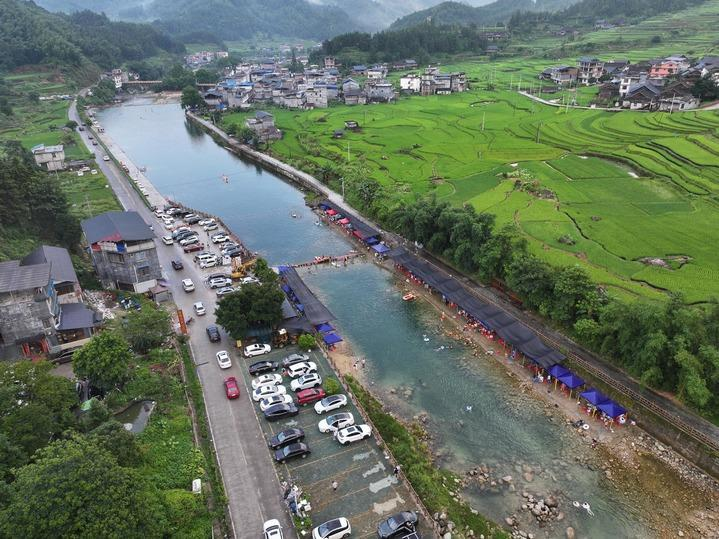 游客在广西柳州市融水苗族自治县香粉乡雨卜村戏水消暑(7月19日摄,无人机照片)。新华社记者 黄孝邦 摄 “我们对70家热门旅游景区实施提级指导,督促景区在旅游高峰期实施预约管理,完善预约平台,发布预约信息,优化预约流程,加强现场客流疏导和服务保障。”文化和旅游部资源开发司副司长魏立忠说。 烈日炎炎,室内滑雪等“新玩法”成为别样的清凉之选。在广州热雪奇迹滑雪场,零下6摄氏度的室内“冰雪王国”里,游客穿着羽绒服度夏成为一道独特风景。 去哪儿旅行数据显示,7月以来,全国室内滑雪与冰雪乐园预订量同比翻番,室内冲浪、室内海钓、室内赶海、室内攀岩等新业态遍地开花,搜索热度环比增逾10倍。