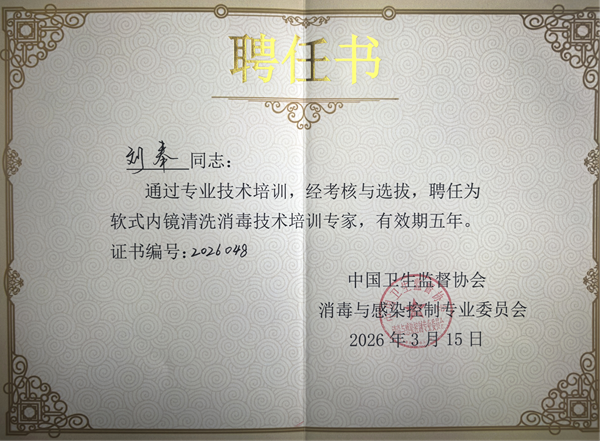 软式内镜作为现代医学诊疗的重要手段,其清洗消毒质量直接关系到患者的生命安全和医疗质量。此次获聘,不仅是对刘奉同志个人在软式内镜清洗消毒领域专业素养的高度肯定,也体现了中国卫生监督协会对加强内镜清洗消毒技术人才队伍建设、推动行业规范化操作的高度重视。
